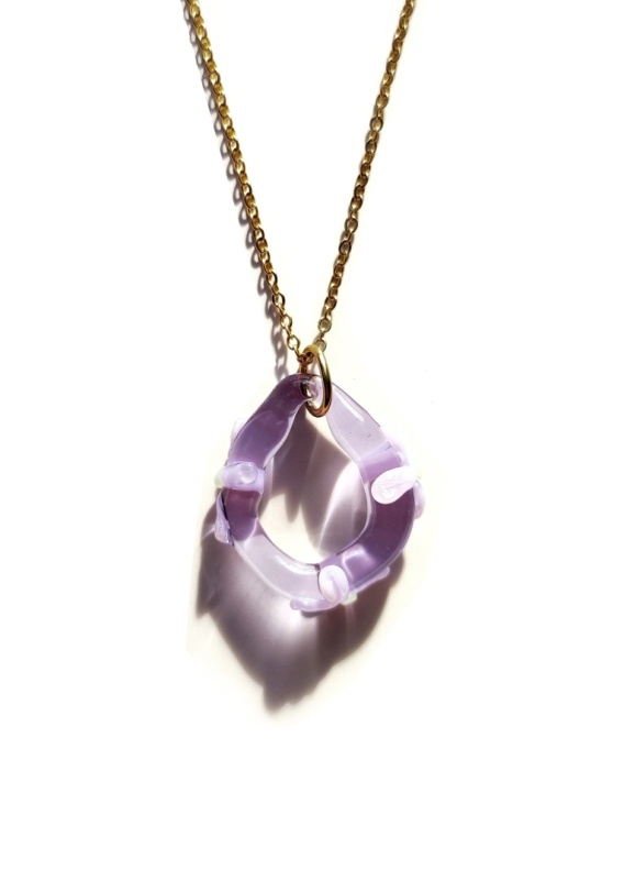 Wisiorek z kolekcji Amorphic to spotkanie prostoty i wyrafinowanej elegancji. Nieregularna forma szkła i wyjątkowa barwa fioletu szkła neodymowego* to esencja subtelnej elegancji. Każdy element jest ręcznie wykonany z dbałością o najmniejsze detale, tworząc unikalną kompozycję, która przyciąga wzrok.